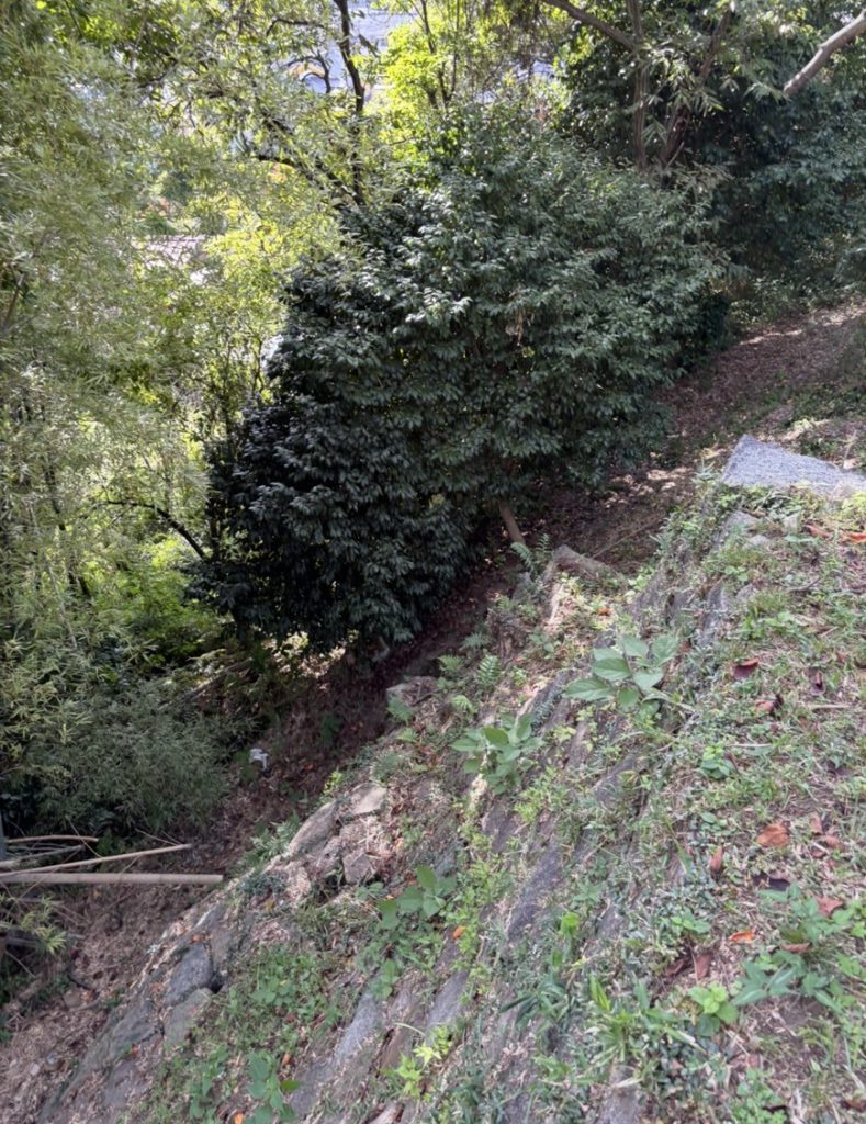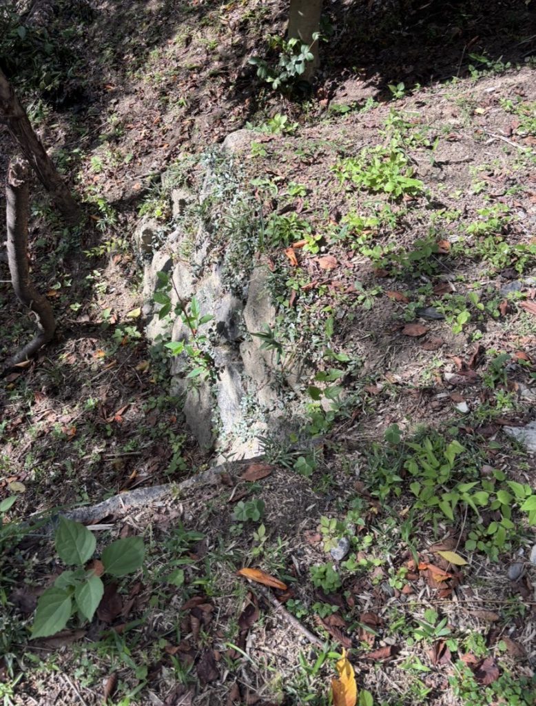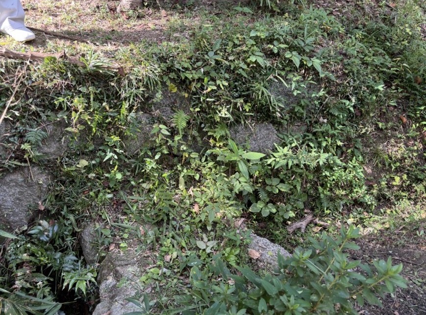 ↑山の中に入らせて頂いた時に撮った写真です。確かに人の手によって積まれたような石垣が見えます。